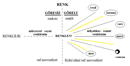 | somut renklenim | göreli renklendirme yeteneği | somut olunum |